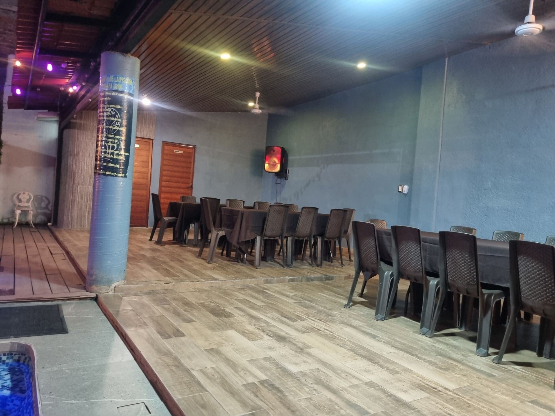 Espacio para cualquier tipo de evento con capacidad hasta para 50 personas. Eventos hasta por 10 hrs Alberca Climatizada (bomba Calor) Cocina equipada. Hielera, estufa gas, frigobar. barra en la terraza Asador Pantallas de TV en terraza y habitación 40" moviliario incluido WIFI Asador 2 Baños y regadera Bocina Bluetooth Area verde .